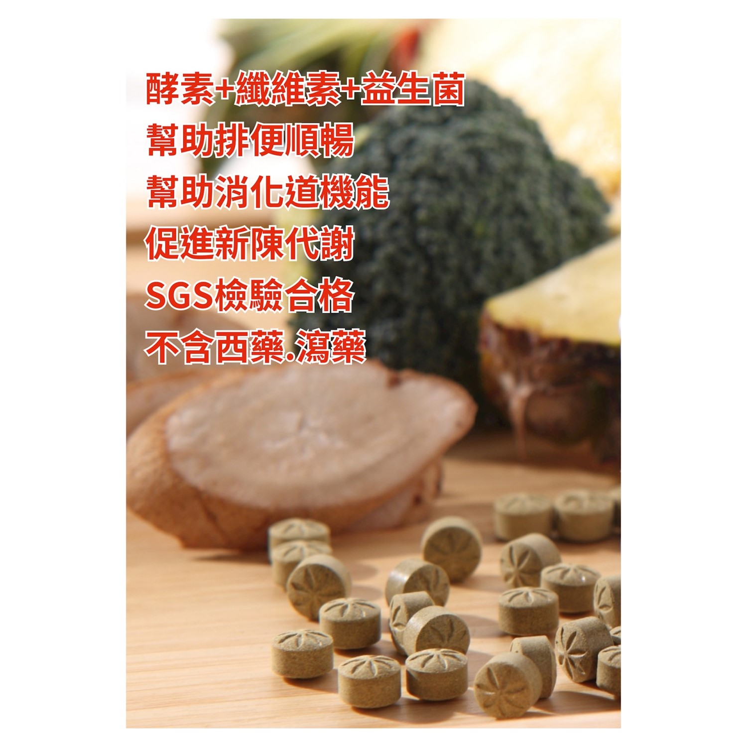 決明子、荷葉、白首烏萃取物、菊糖(菊苣纖維)、麥芽糊精、綜合酵素(含澱粉水解酵素、蛋白質分解酵素、脂肪分解酵素、纖維分解酵素)、綜合蔬果酵素粉(含紫花苜蓿、諾麗果、朝鮮薊、大麥草、甜菜根、苦瓜、雷公根、辣木葉、南瓜、小麥草、螺旋藻、綠藻、巴西莓、西印度櫻桃、黑莓、藍莓、蔓越莓、枸杞、葡萄子、山竹、智利酒果、石榴、草莓、覆盆莓、麥芽糊精、阿拉伯膠、二氧化矽)、優格香料、二氧化矽、硬脂酸鎂、螺旋藻、綠藻、果寡糖、鳳梨萃取物、苦瓜萃取物、藤黃果萃取物、羊角豆、食用大黃、蘿蔔子、甘草、蔗糖素(甜味劑)、益生菌(含嗜酸乳桿菌、比菲德氏菌、龍根菌、乾酪乳桿菌)。